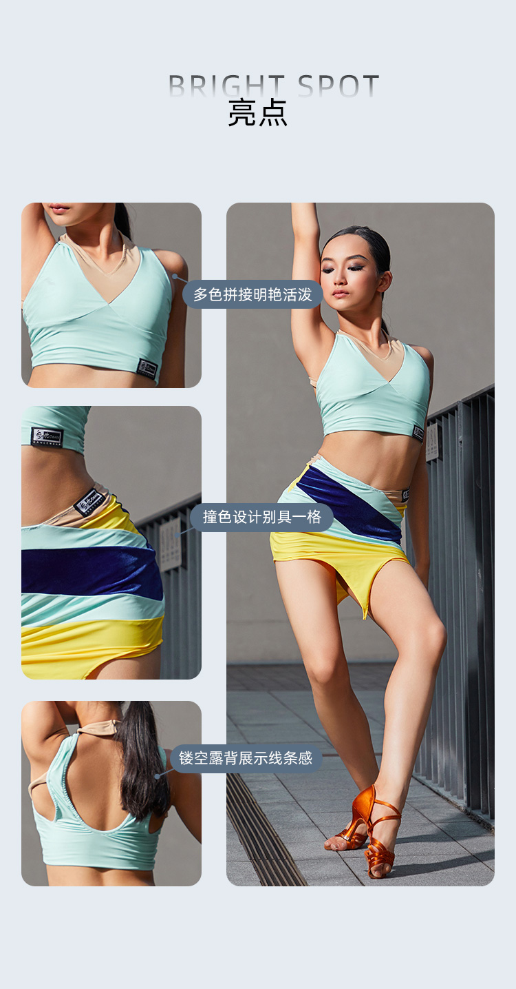 皇朝舞蹈拉丁女童新款撞色拼接套装H6272+H7223