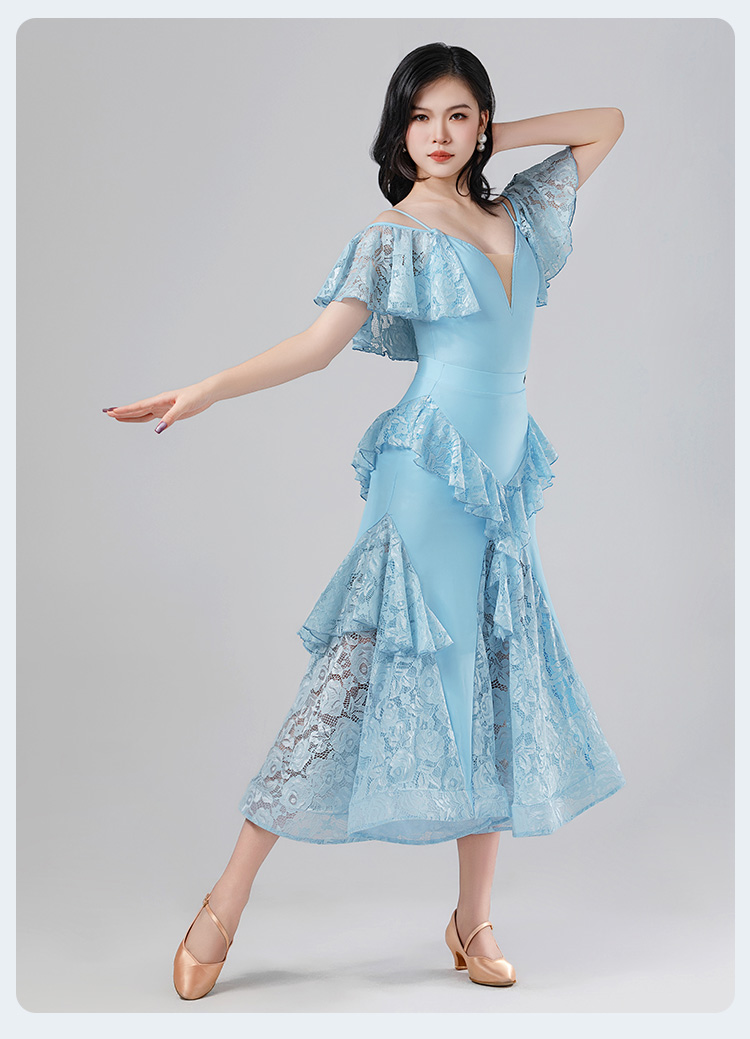 皇朝拉丁2024年3月女童摩登V领肩带拼接蕾丝套装H6375+H7295