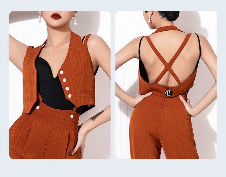 HC·DANCE拉丁舞服新款女成练功服马甲背带裤分体DS1005+DX2009