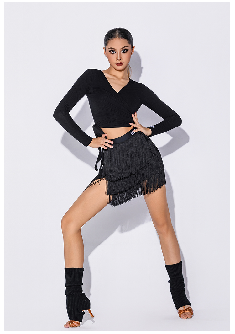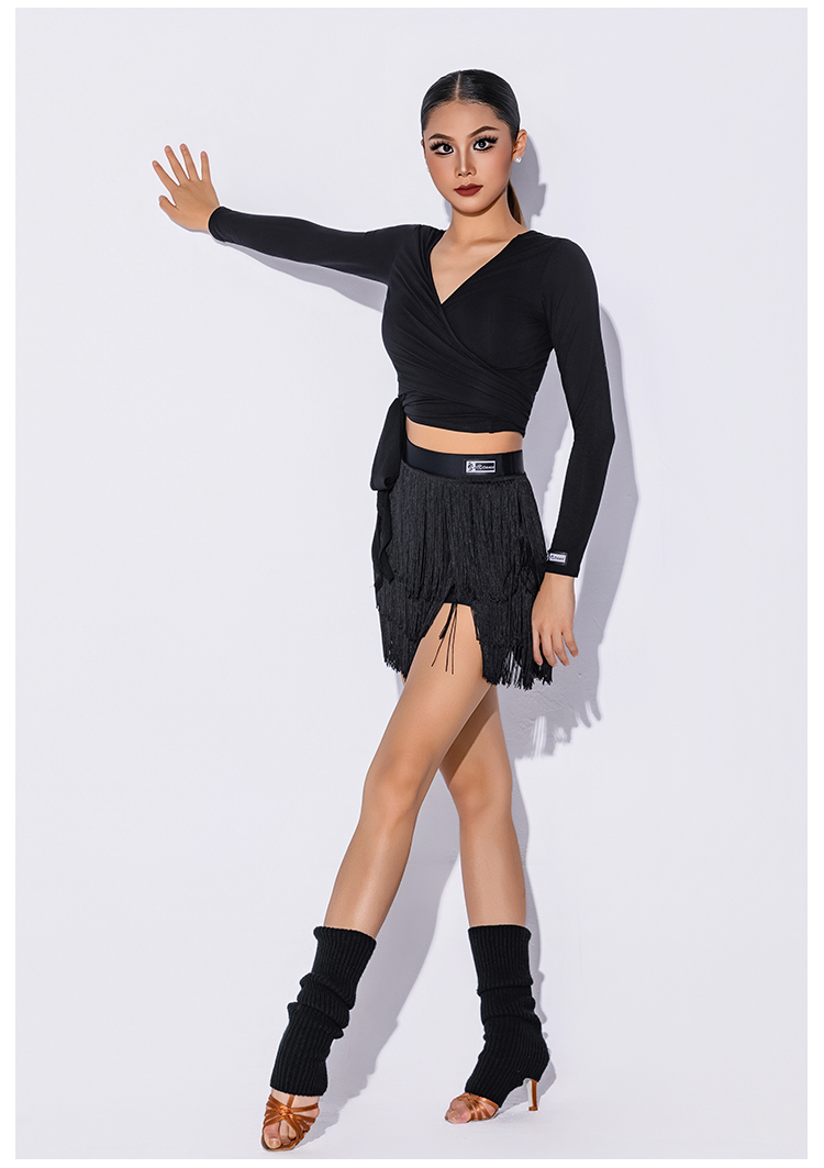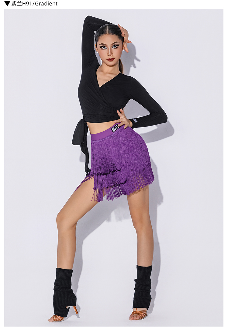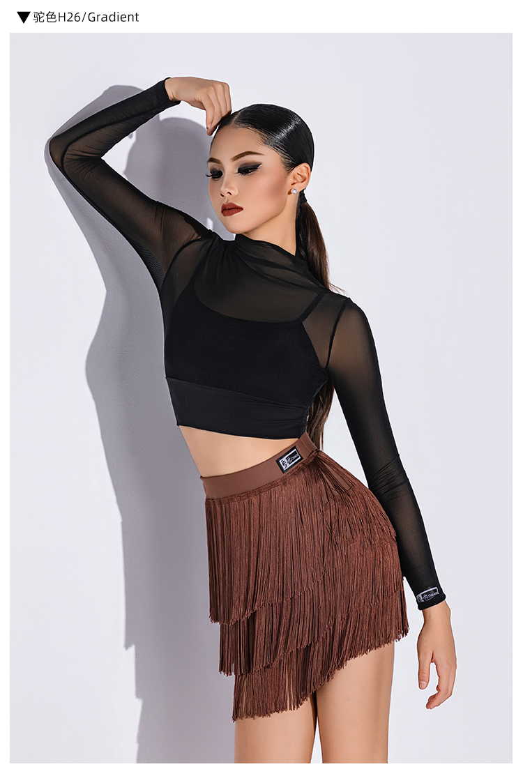 皇朝舞服新款成人女练习服专业拉丁舞服流苏半身裙AH6206+A2377