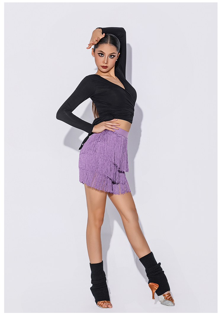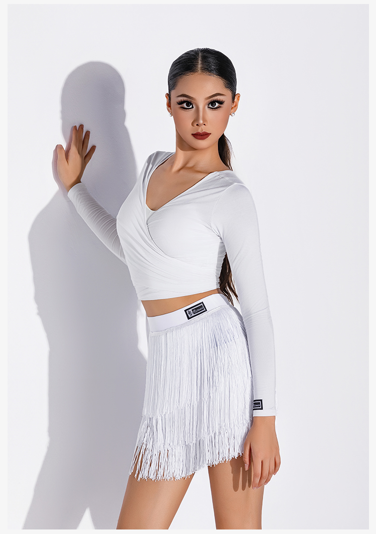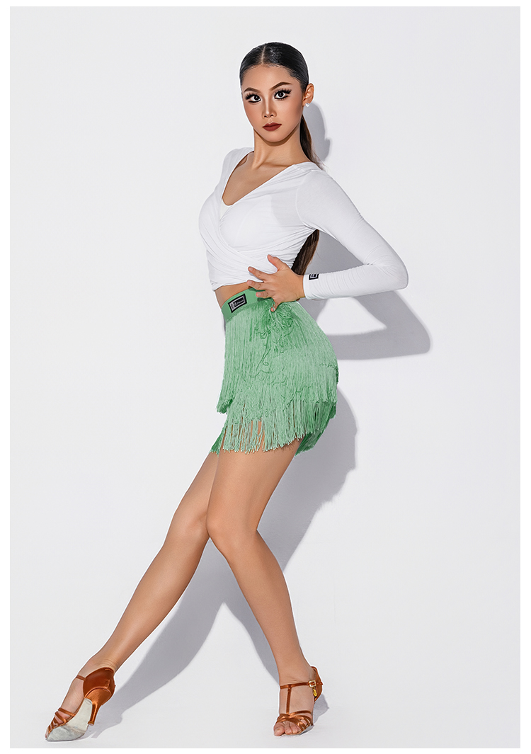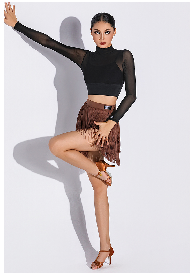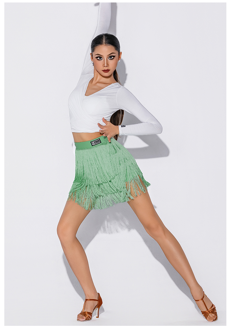 皇朝舞服新款成人女练习服专业拉丁舞服流苏半身裙AH6206+A2377