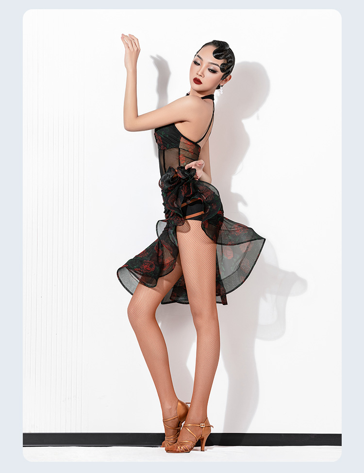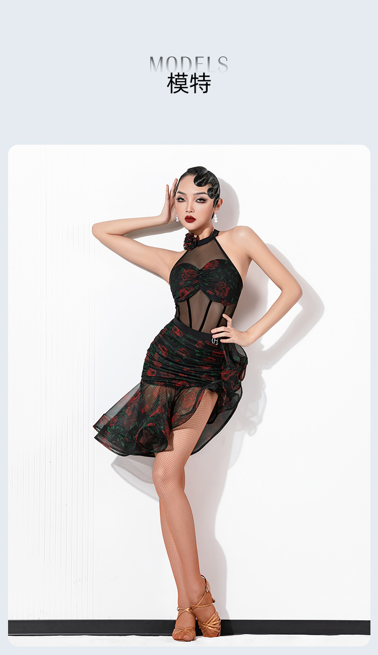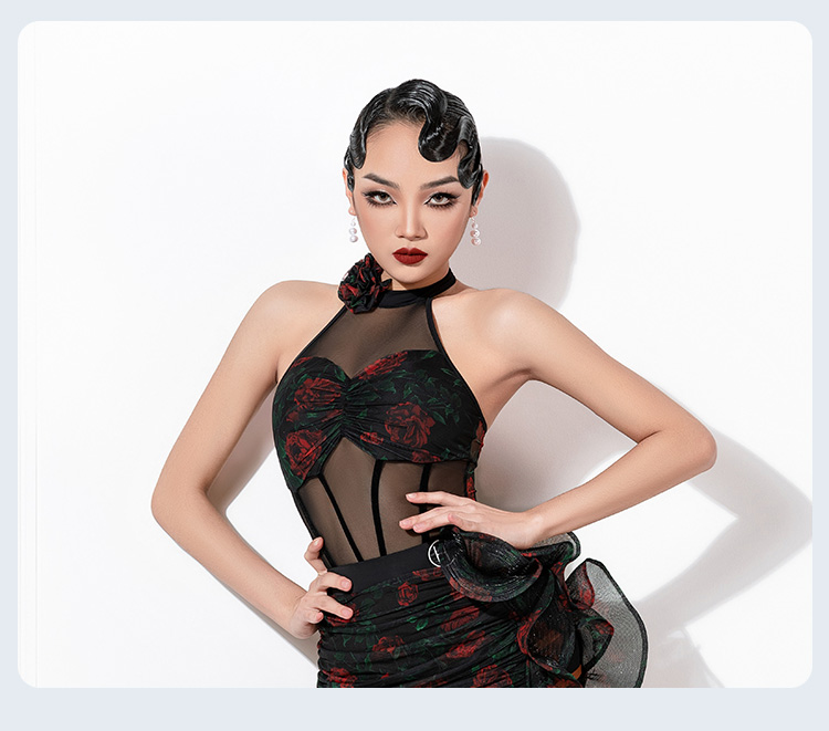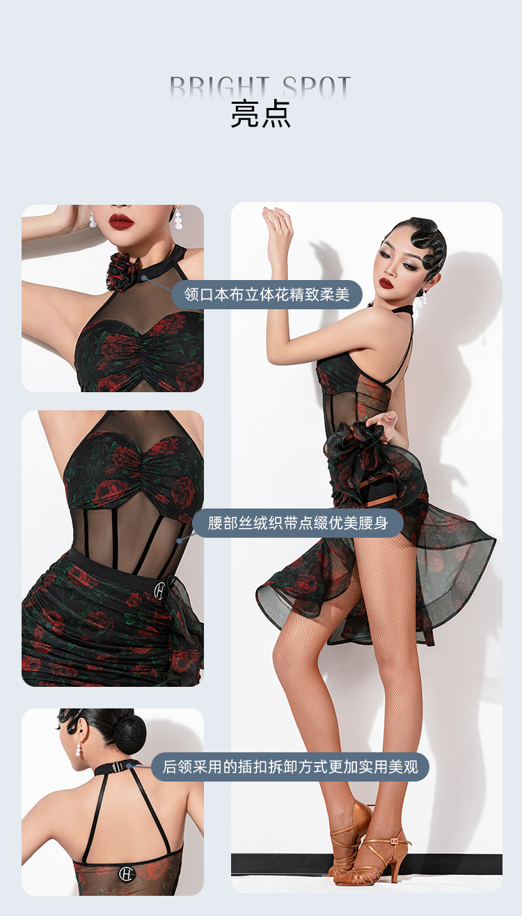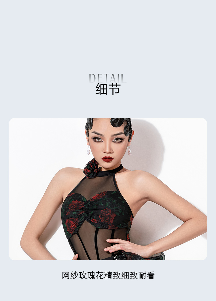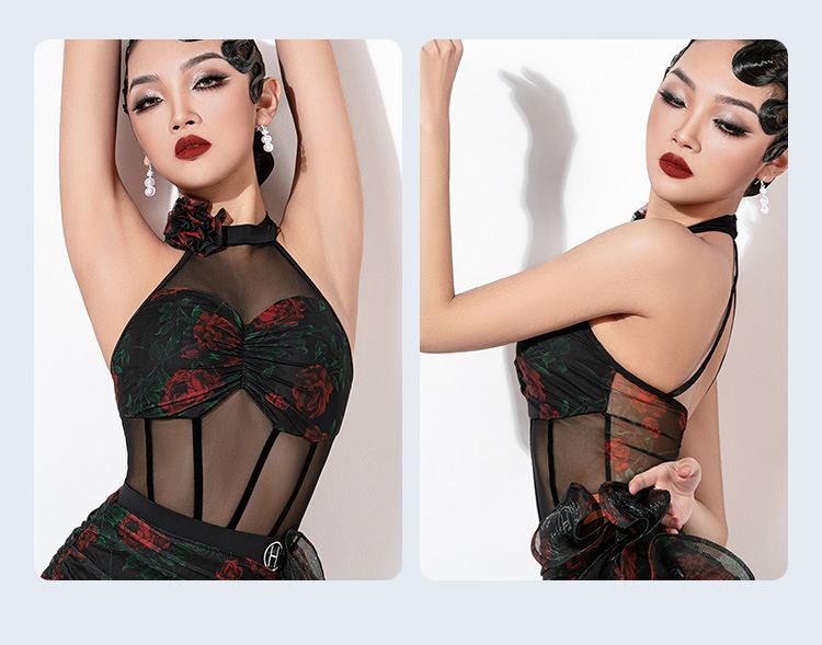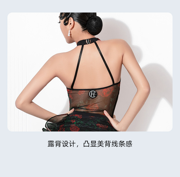 HC·DANCE拉丁舞服新款女成练功服挂脖网纱性感连体上衣DS1035