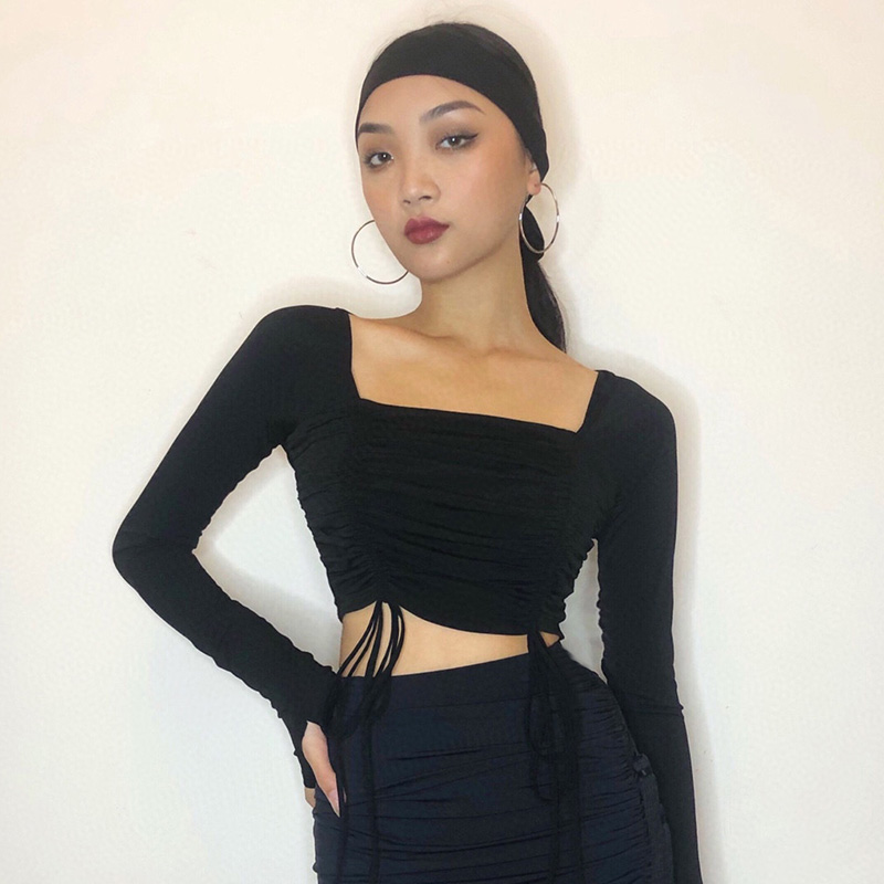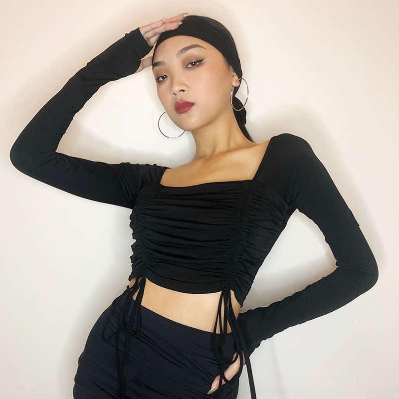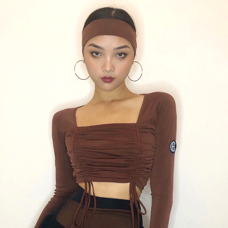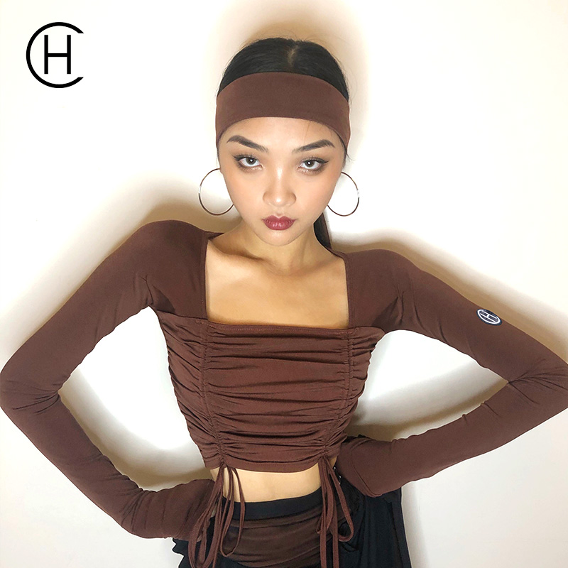 HCDance/皇朝舞蹈新款专业拉丁舞服秋季长袖系带咖色上衣DS1024
