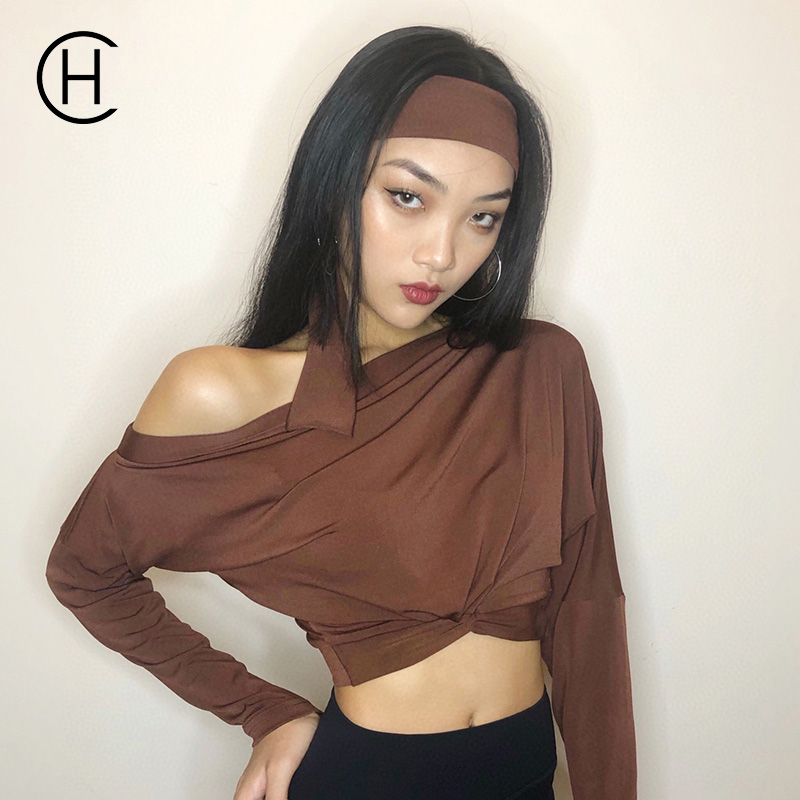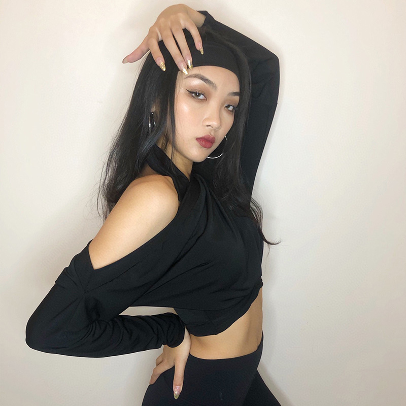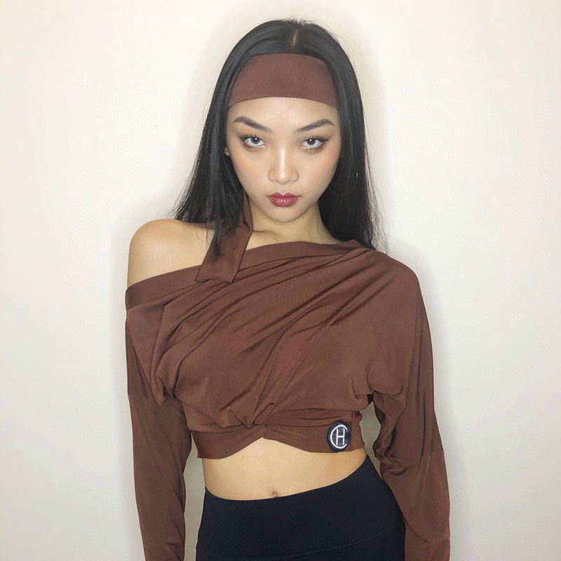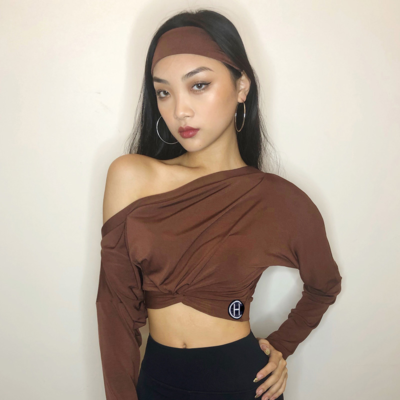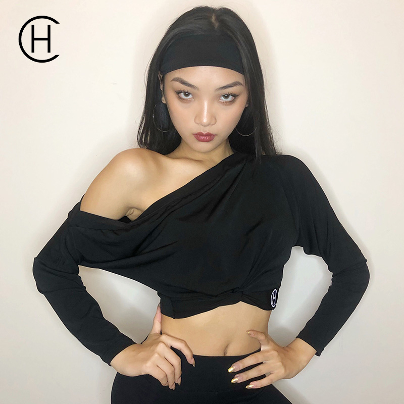 HCDance/皇朝舞蹈新款专业拉丁舞服秋季长袖斜肩高腰上衣 DS1023