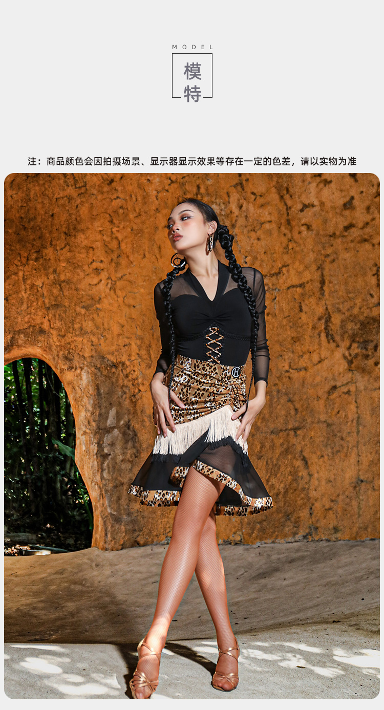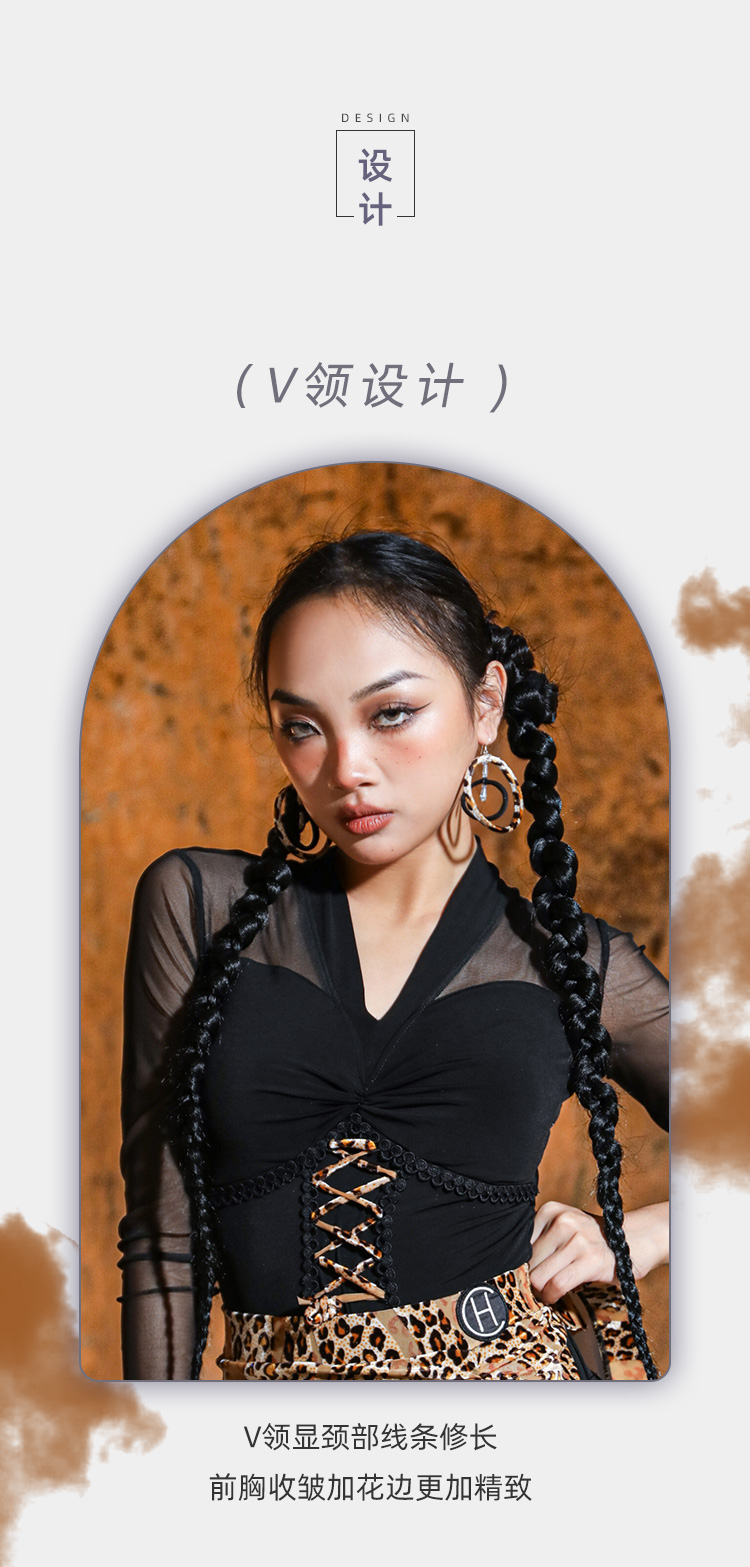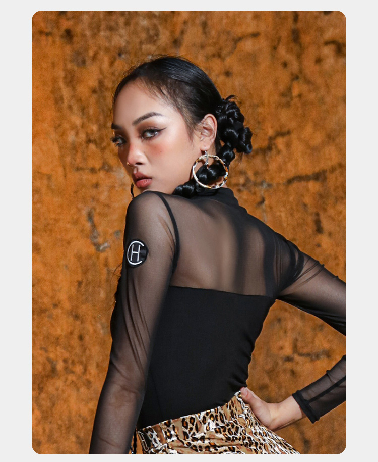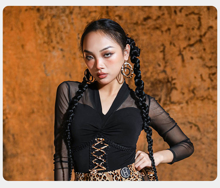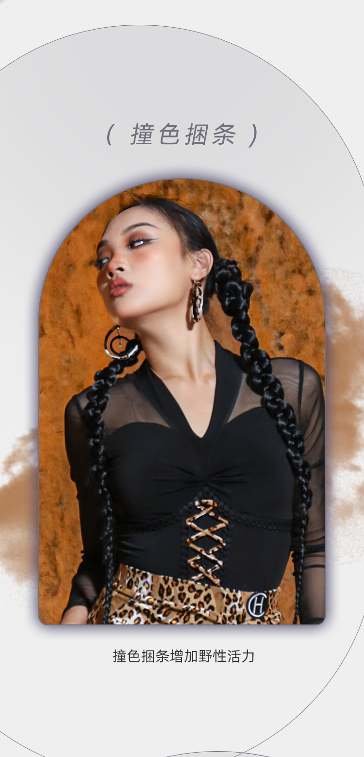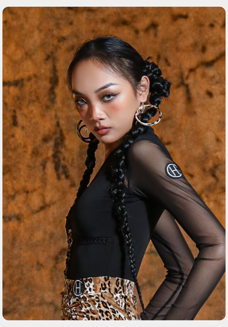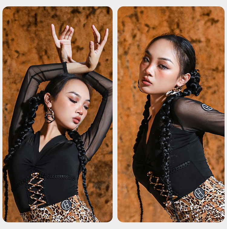 HC·DANCE拉丁舞练功服女士V领舞衣上衣新款长袖黑色连体衣DS020