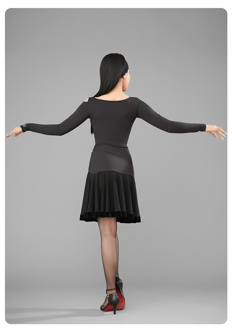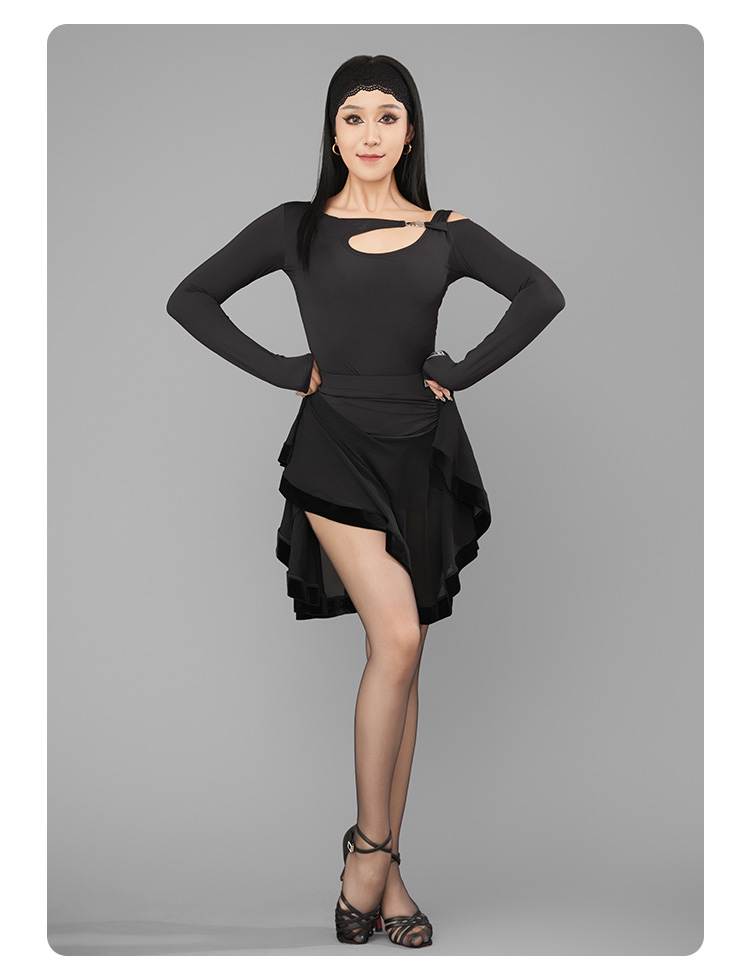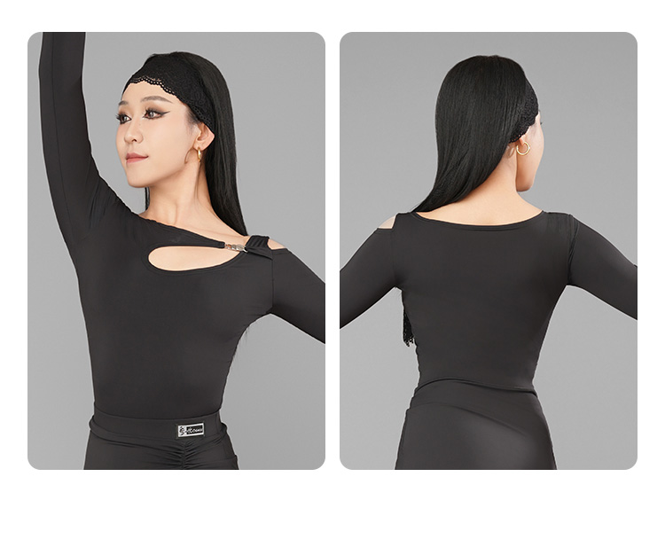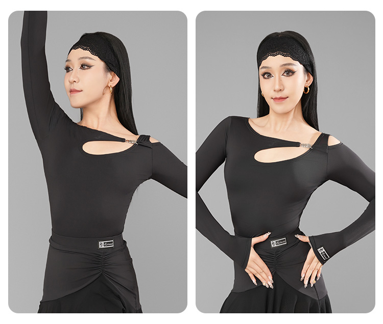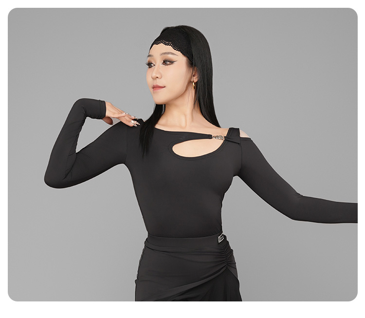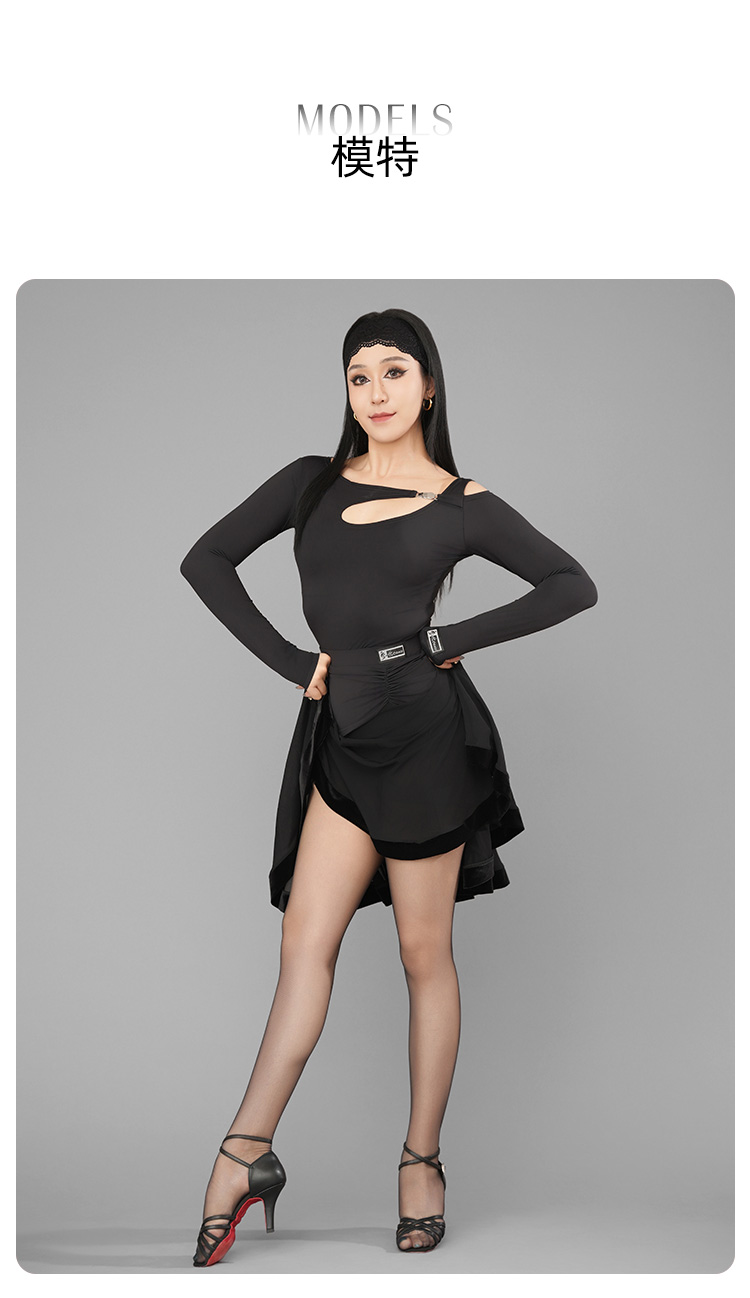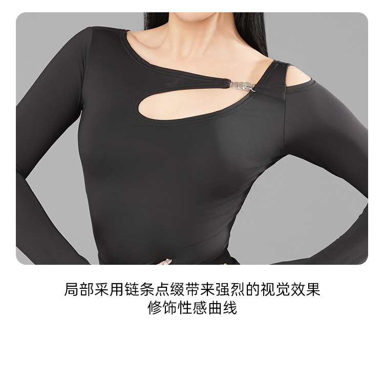 HC·DANCE拉丁舞服不对称镂空链条连接长袖连体衣A1399