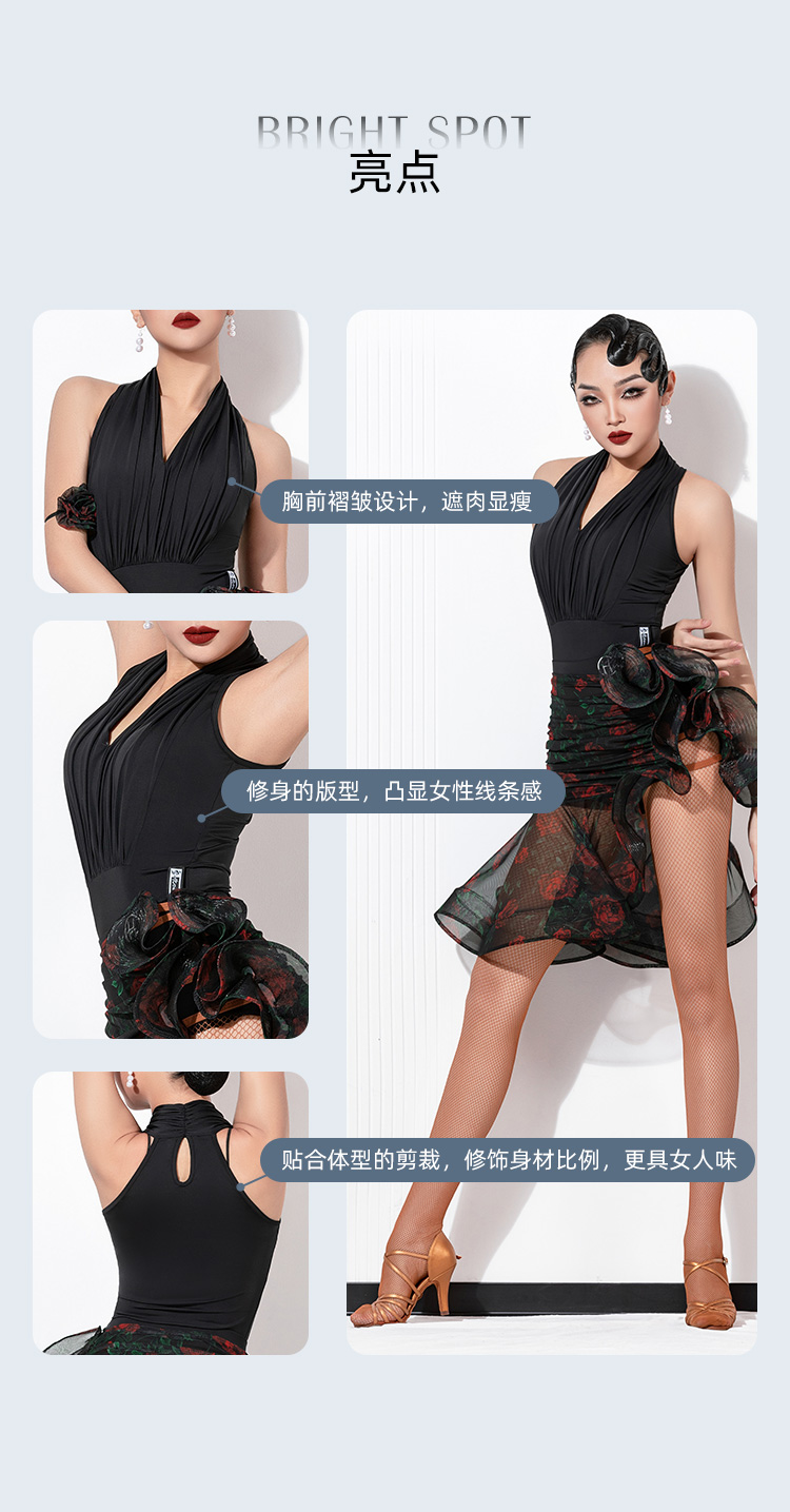 皇朝舞蹈拉丁舞服新款女成练功服梦露款无袖连体衣A1078