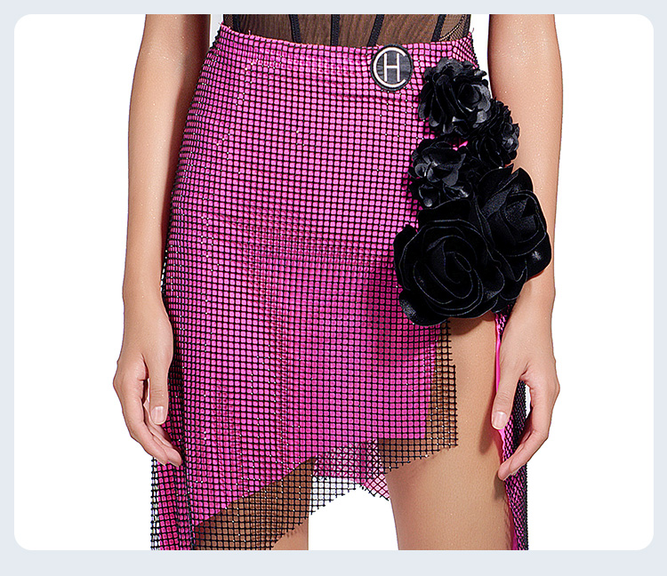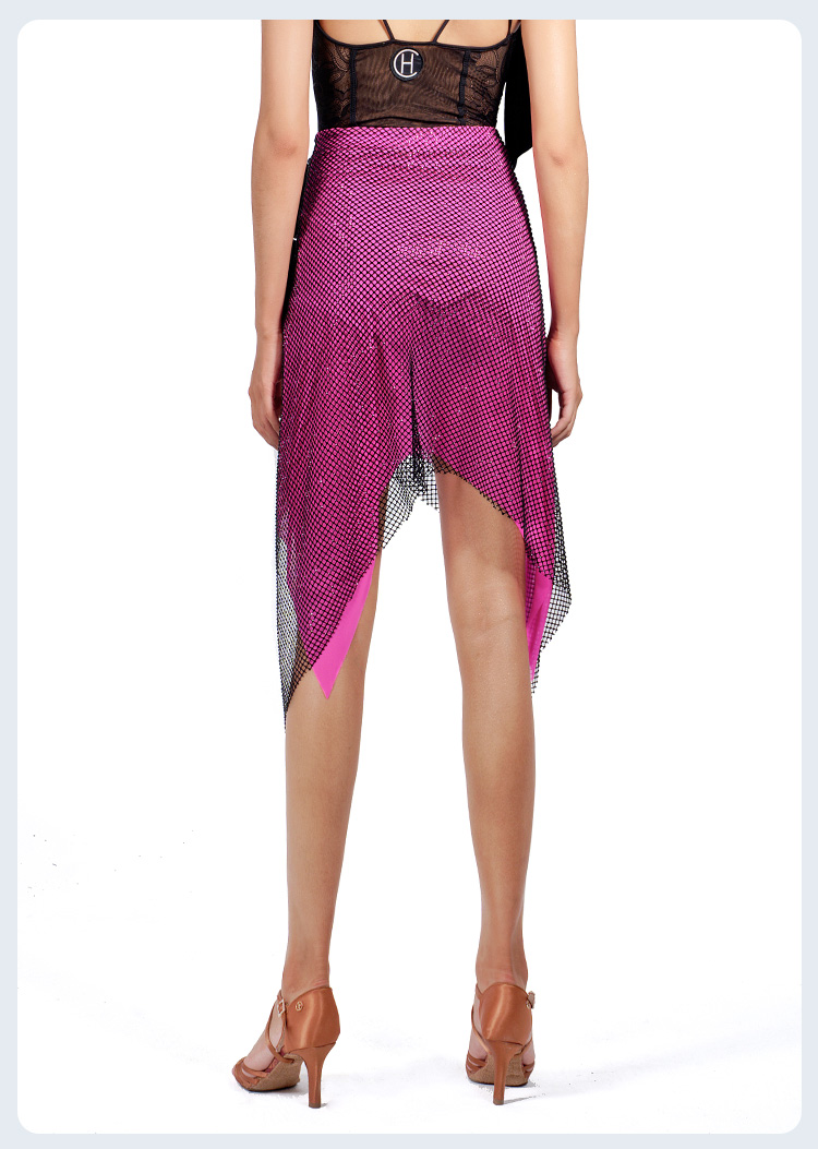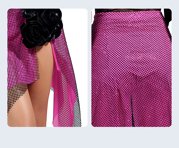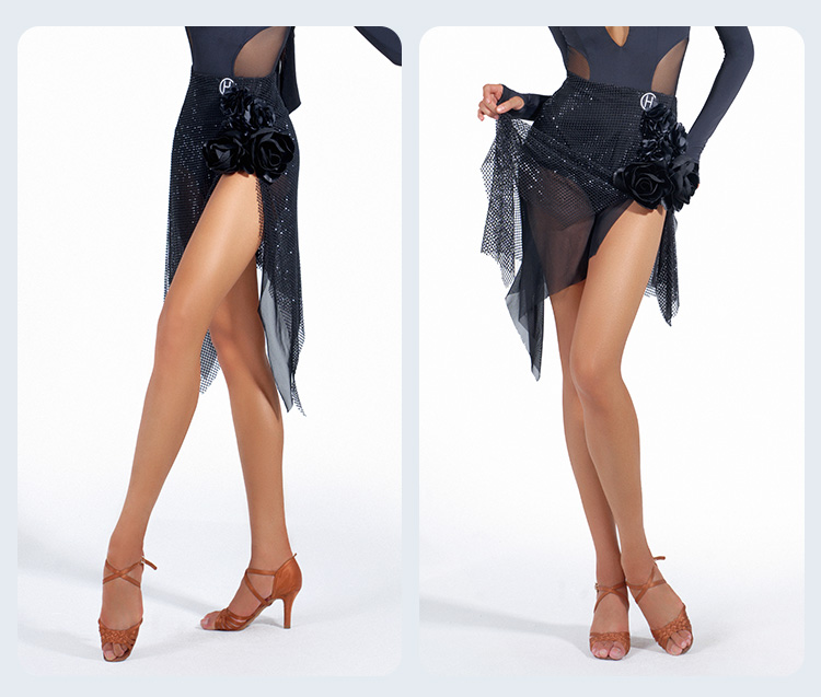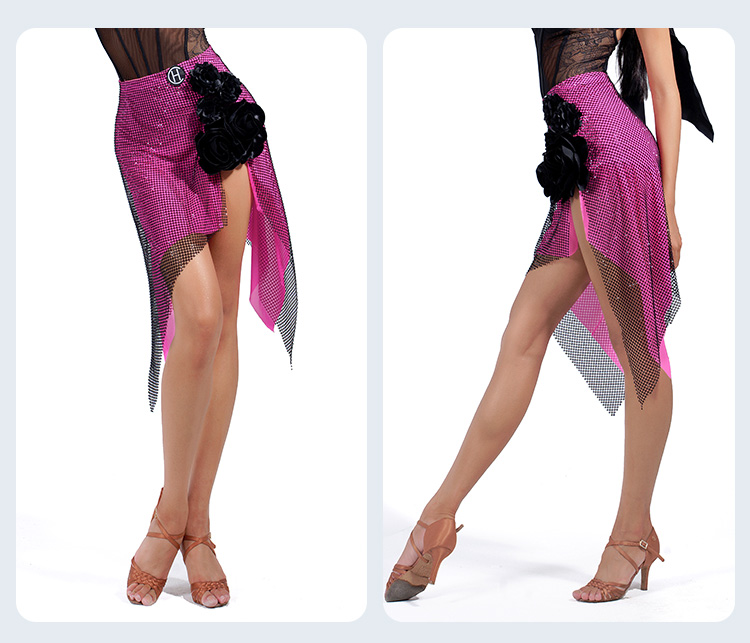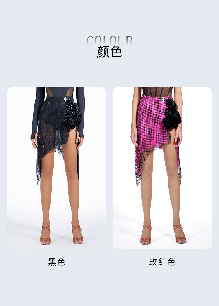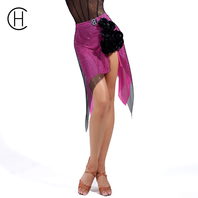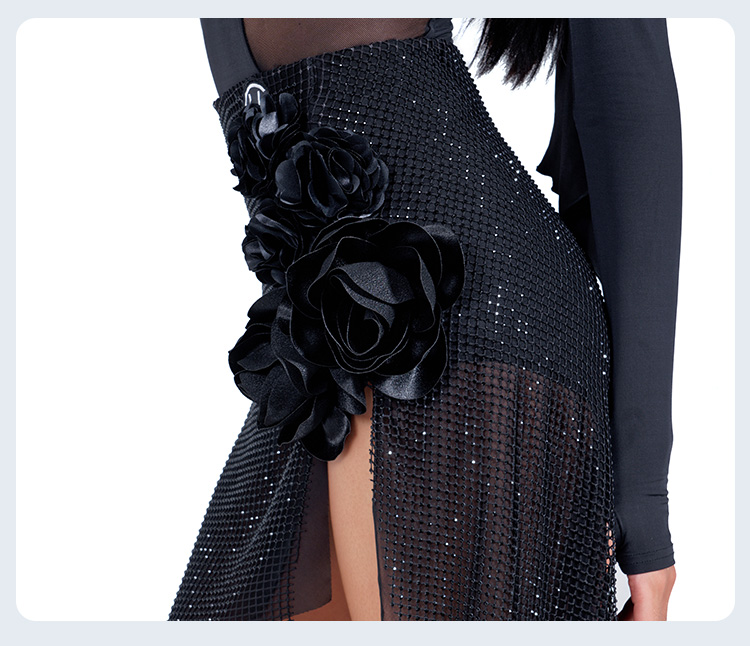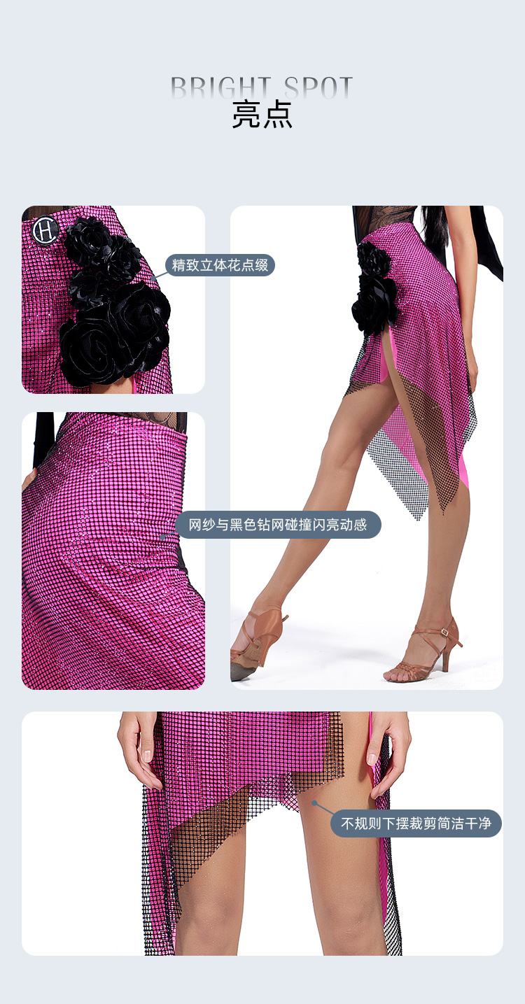 HC·DANCE 拉丁舞裙专业性感舞裙立体花带钻网表演服半身裙 DX2016