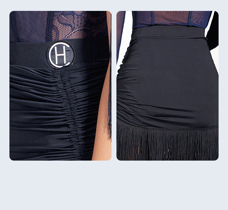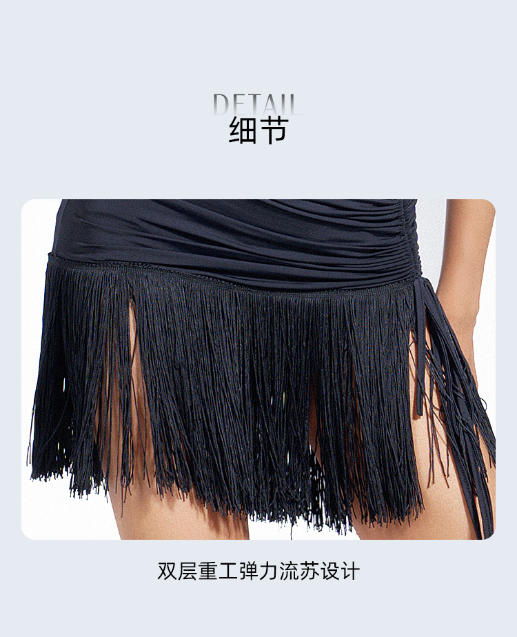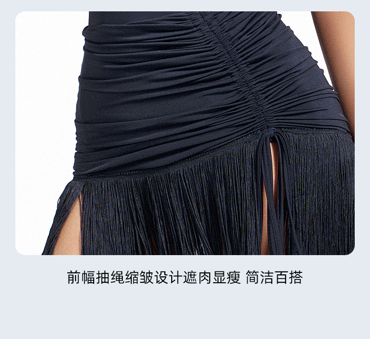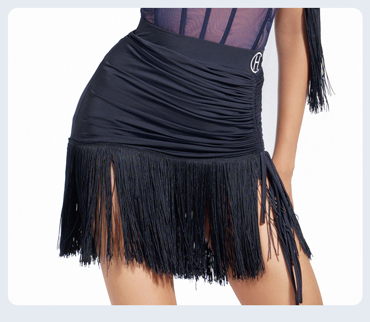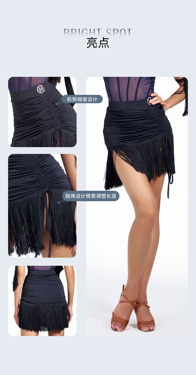 HC·DANCE 拉丁舞裙抽绳半身裙新款流苏裙摆练功服女含底裤 DX2017