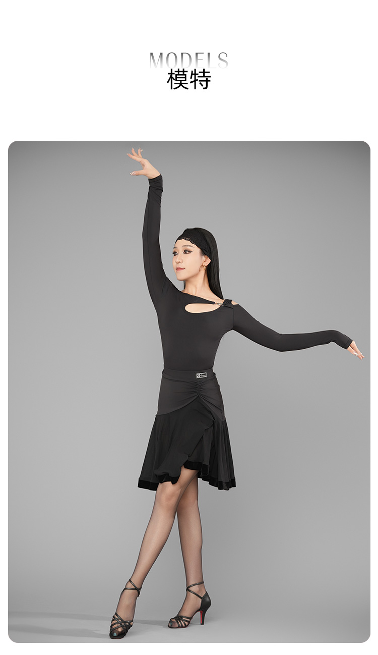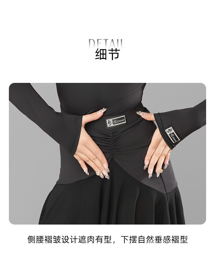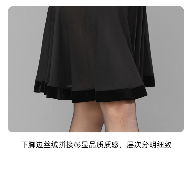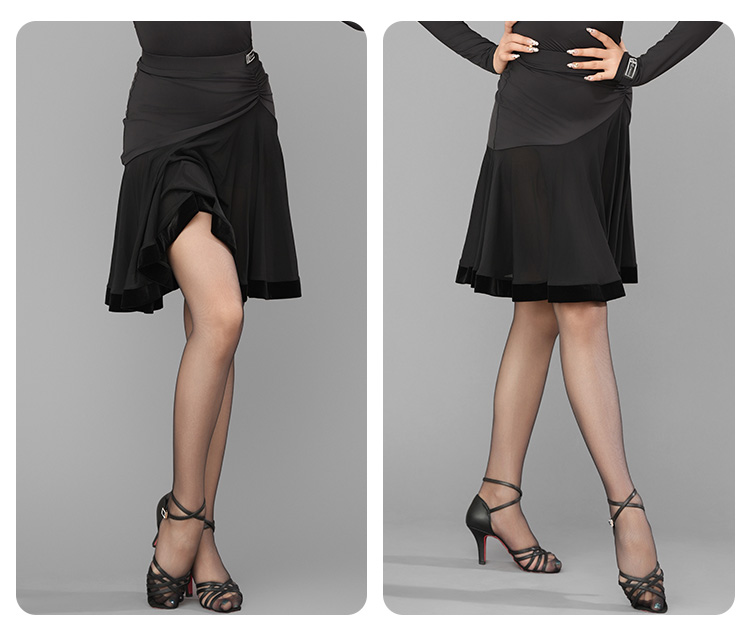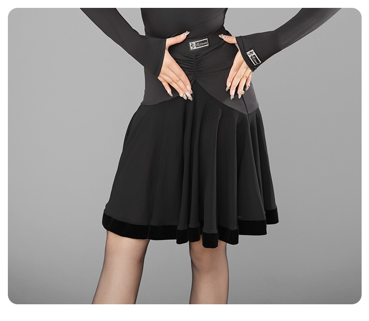 HC·DANCE拉丁舞服半包臀褶皱大摆丝绒下脚半身裙A2319