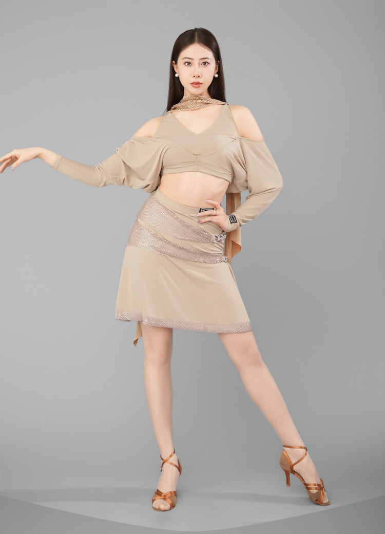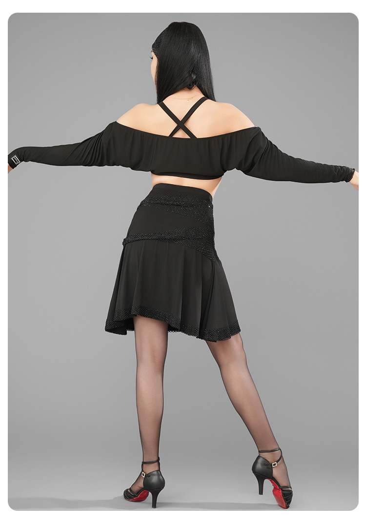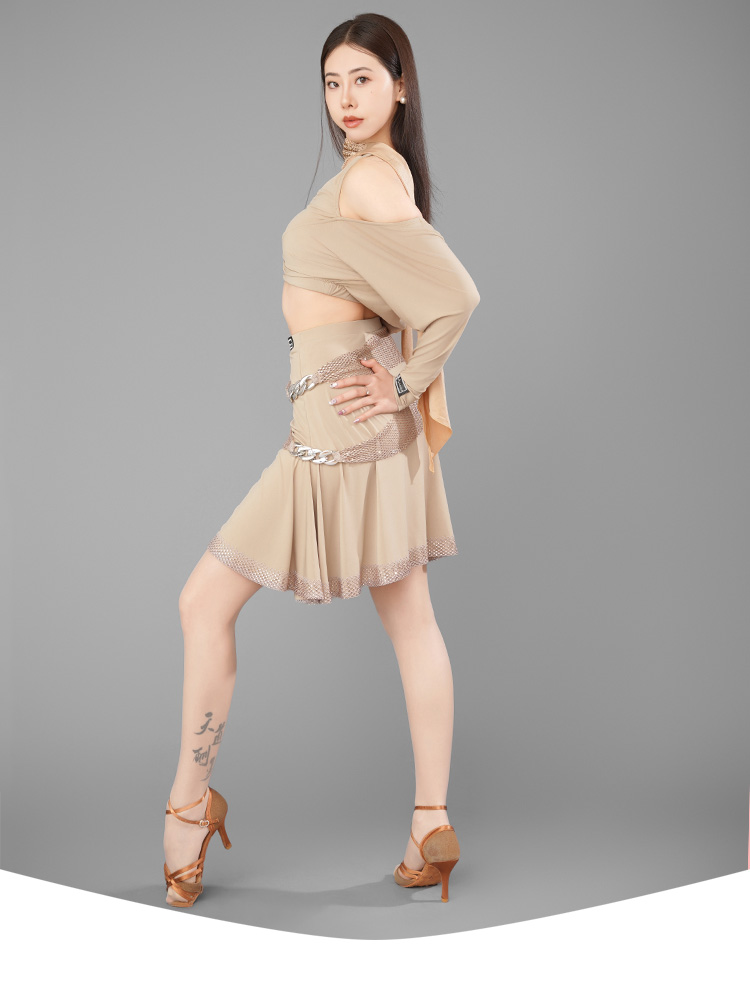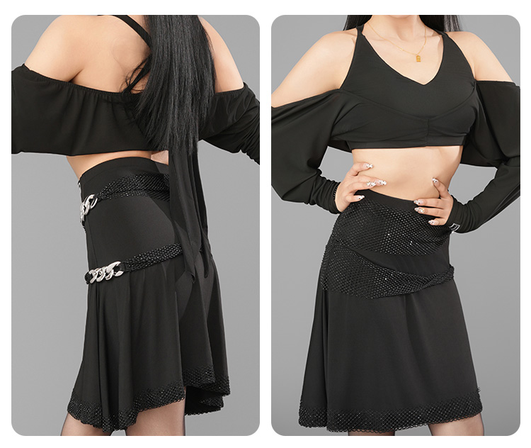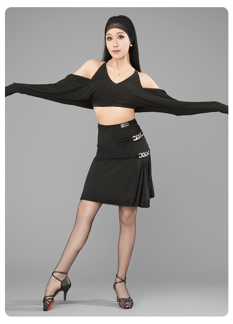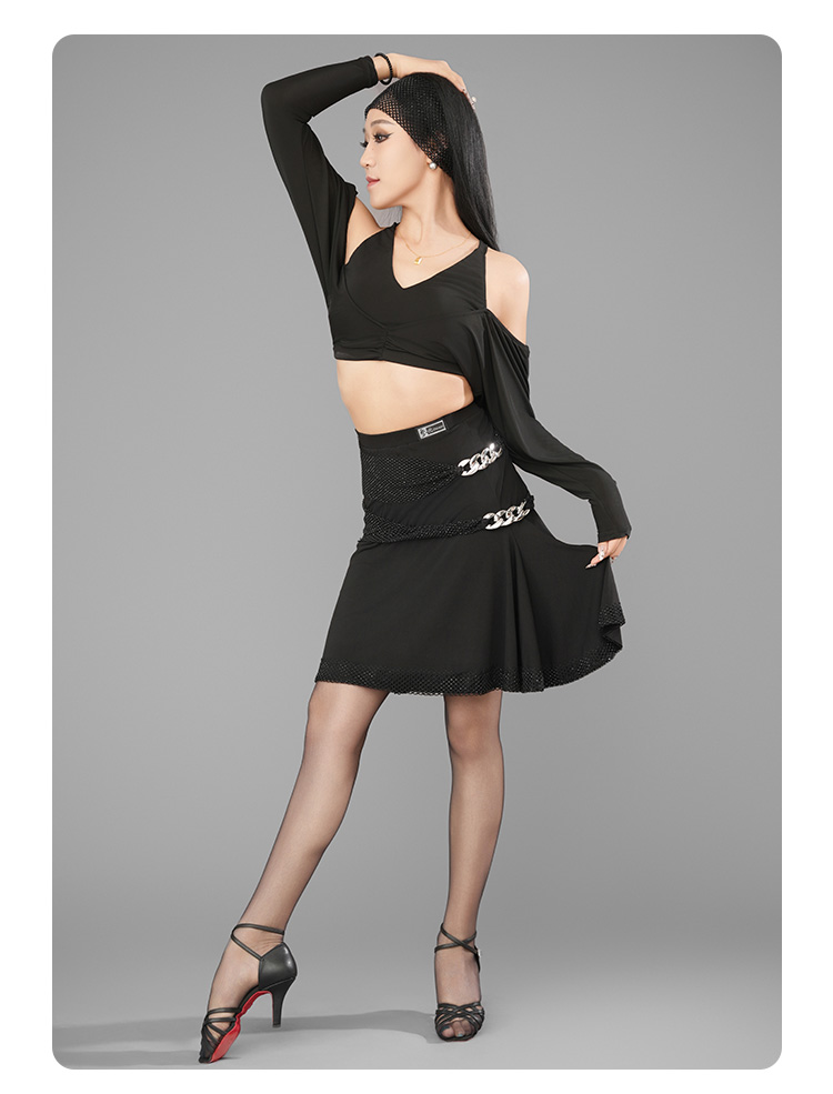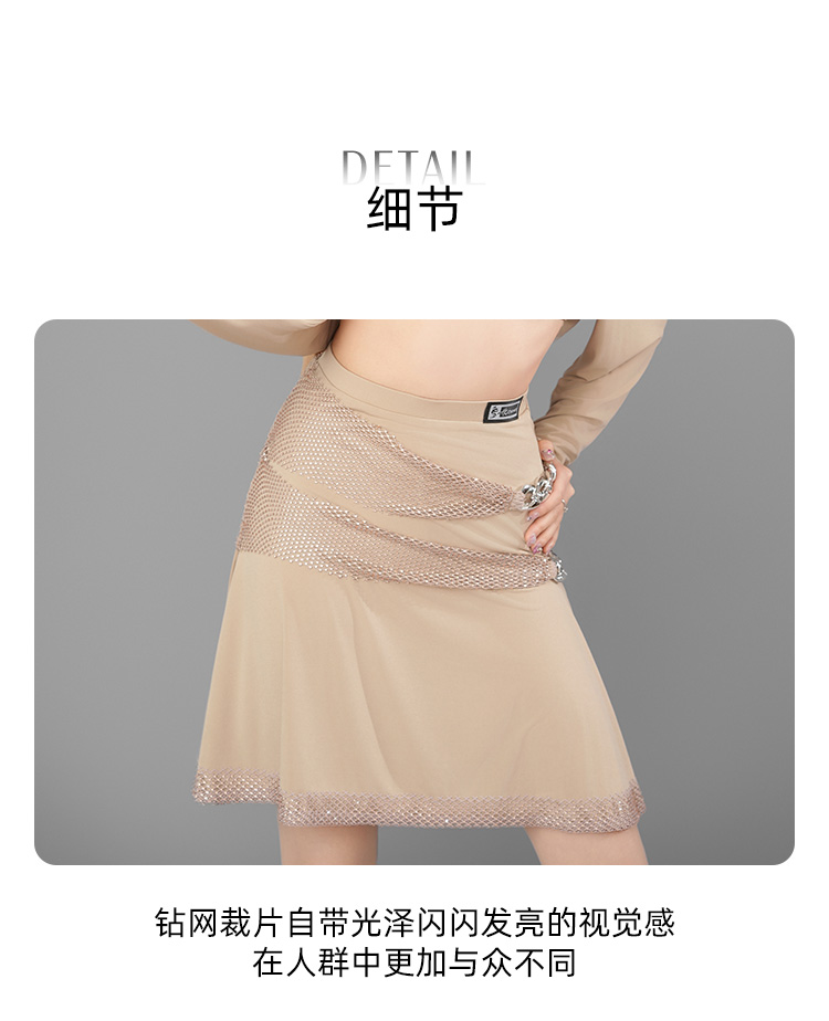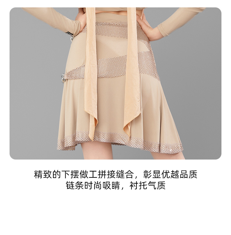 HC·DANCE拉丁舞服钻网银色链条连接半身裙A2317