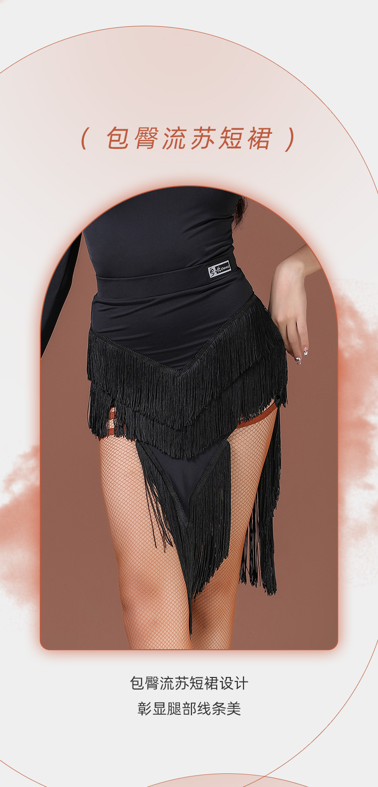 拉丁女士性感黑色半身裙流苏裙 A2198