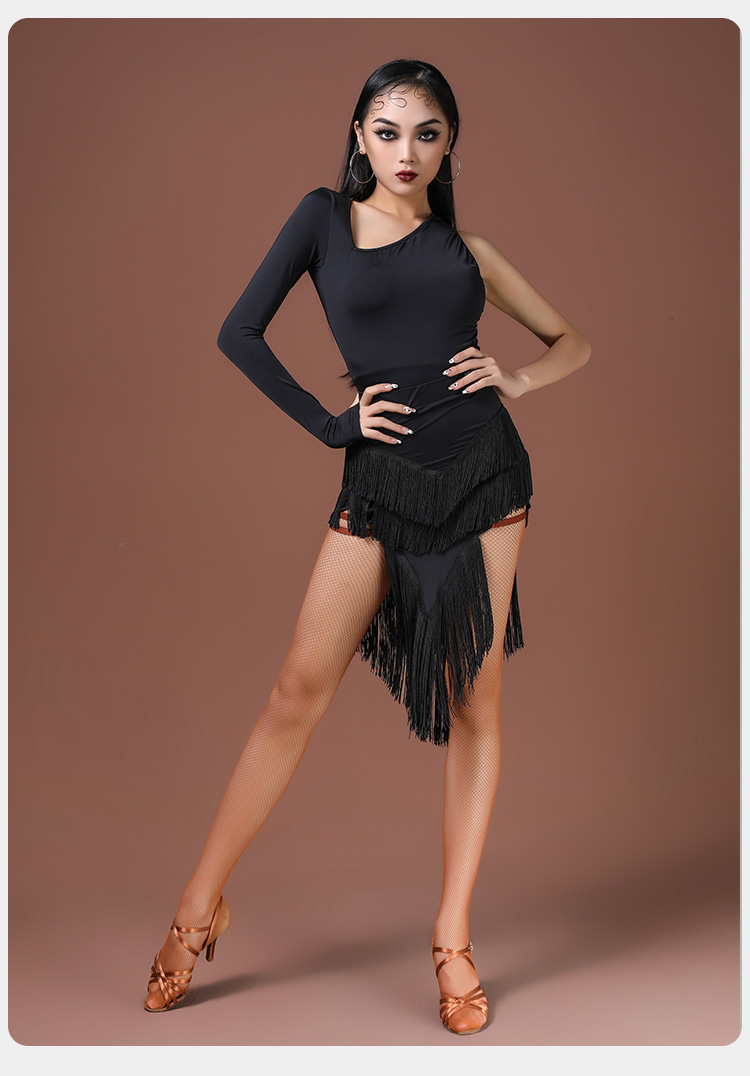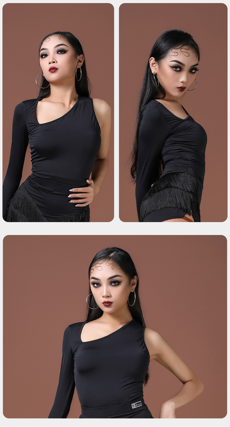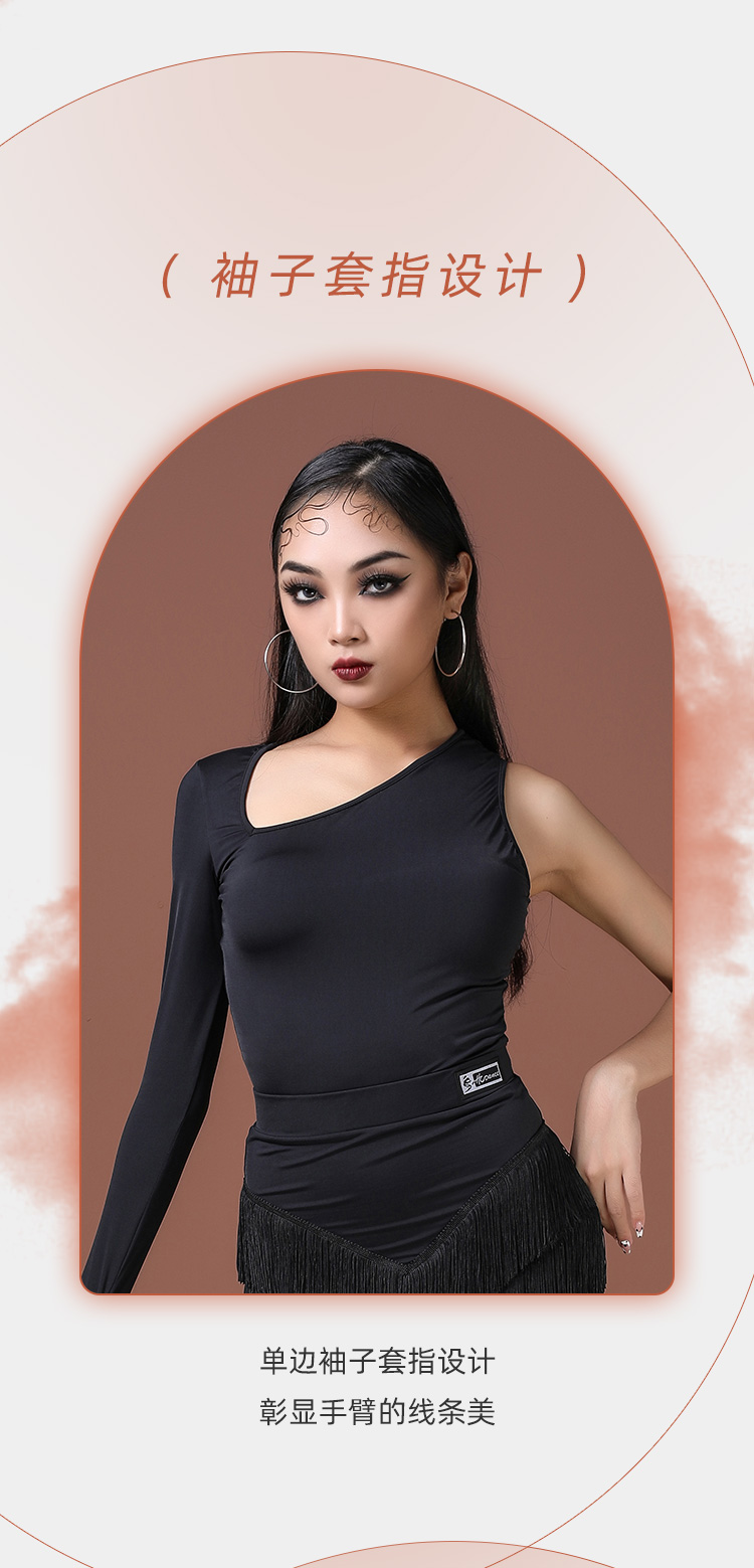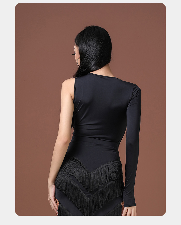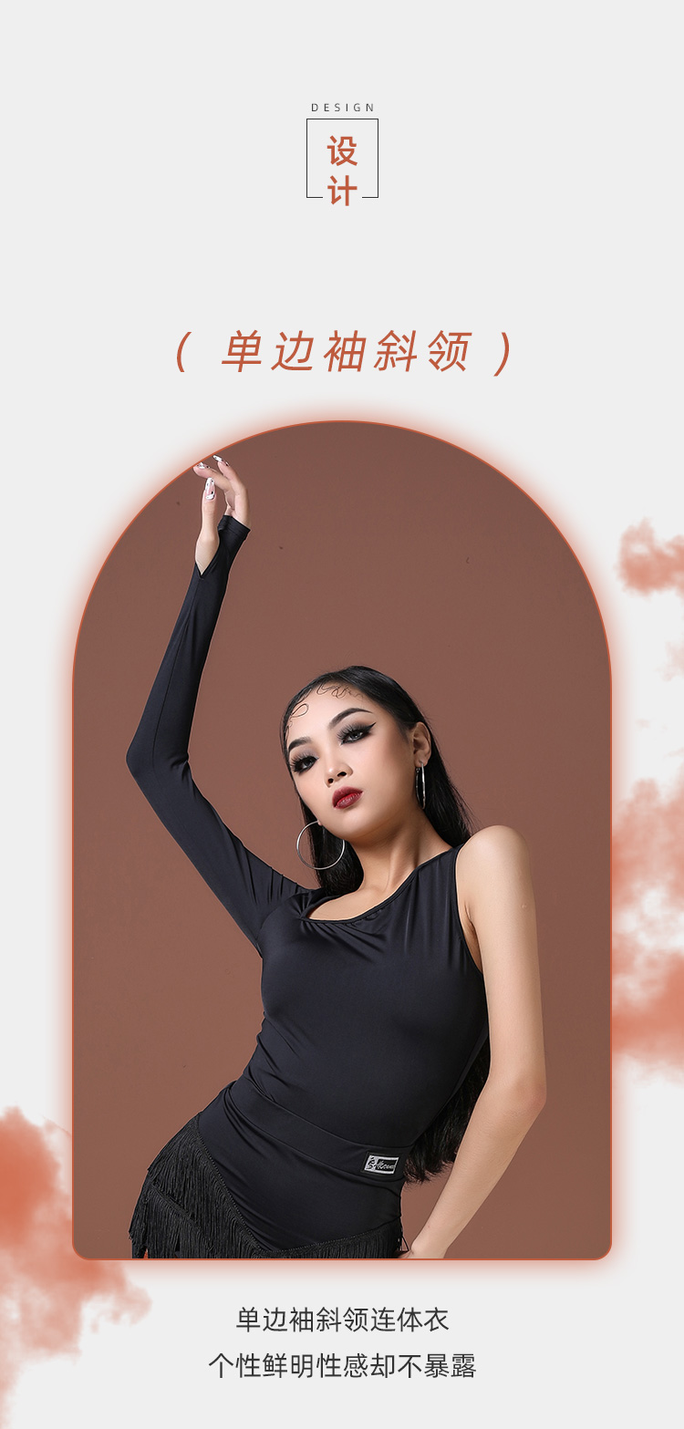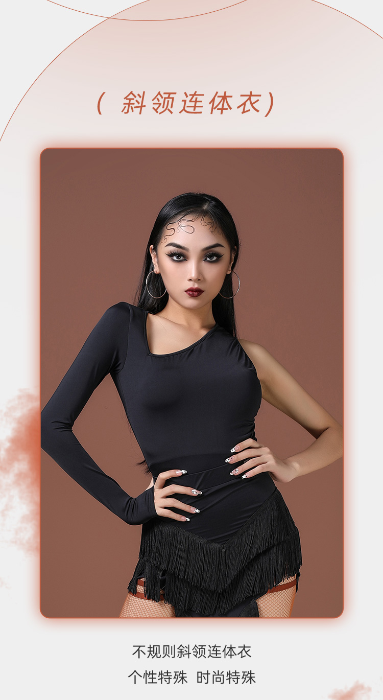 拉丁舞蹈新款时尚圆领斜肩(连体)上衣 A1231